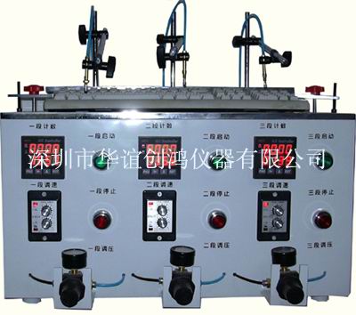 簡(jiǎn)單說明:本機(jī)可對(duì)電腦、手機(jī)、計(jì)算器、記事本等鍵盤做壽命測(cè)試。 尤其適用于電腦鍵盤按鍵作疲勞測(cè)試 [特點(diǎn)]: 本機(jī)采用日本原產(chǎn)之氣動(dòng)原件,最多可同時(shí)測(cè)試3個(gè)按鍵,每個(gè)工位可獨(dú)立動(dòng)作互不干預(yù) 由于采用萬向節(jié)支臂,測(cè)點(diǎn)可于鍵盤上的任意一點(diǎn),高度易于調(diào)整 操作簡(jiǎn)便,性價(jià)比高