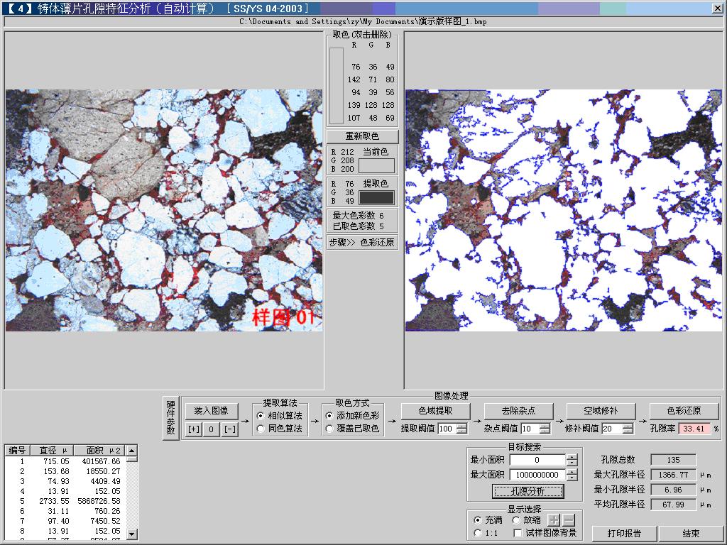 本軟件以用戶需求為依據,開發出了專用的圖像分析軟件功能模塊,用戶可在本軟件的幫助下,完成巖石圖像分析工作。